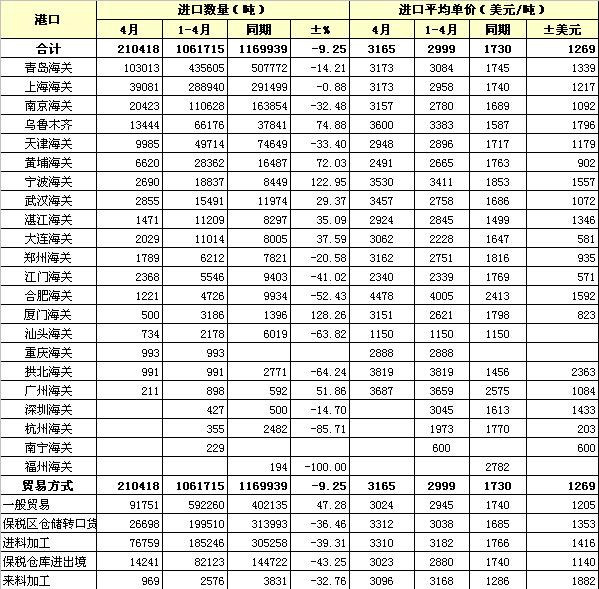 錦橋紡織網(wǎng)—資訊頻道> 統(tǒng)計資料>正文 2011年4月各港口棉花進口及貿(mào)易方式統(tǒng)計表
