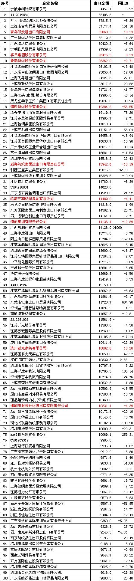 2012年1-7月中國紡織品服裝出口企業(yè)排名