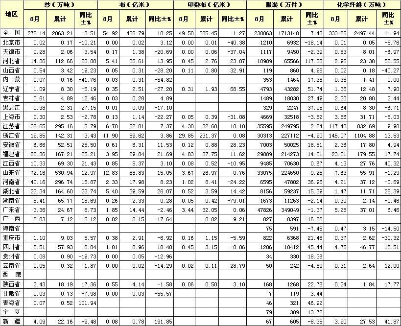 錦橋紡織網(wǎng)—資訊頻道> 統(tǒng)計(jì)資料>正文 2012年1-8月各省市主要產(chǎn)品產(chǎn)量統(tǒng)計(jì)表