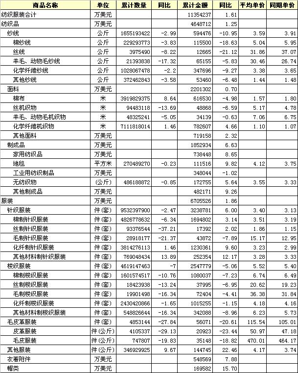 錦橋紡織網(wǎng)—資訊頻道> 統(tǒng)計資料>正文 2012年6月全國紡織服裝出口產(chǎn)品統(tǒng)計