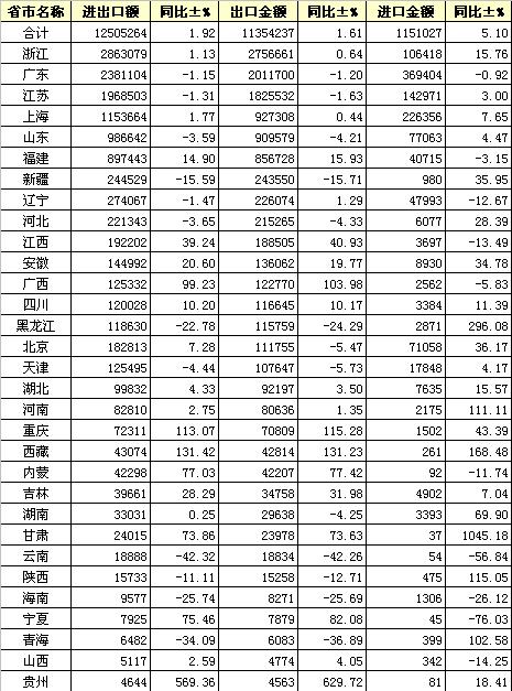 2012年6月全國紡織服裝進(jìn)出口分省市統(tǒng)計(jì)
