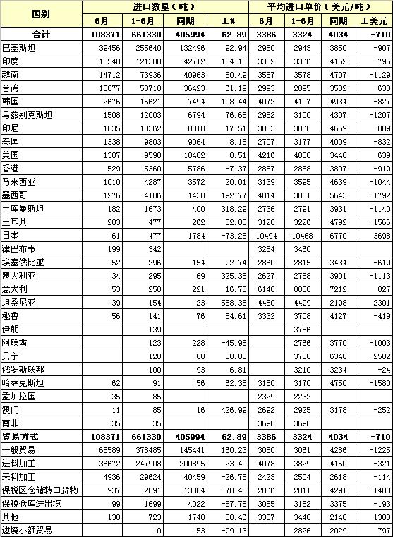 錦橋紡織網(wǎng)—資訊頻道> 統(tǒng)計資料>正文 2012年6月我國棉紗線進口統(tǒng)計