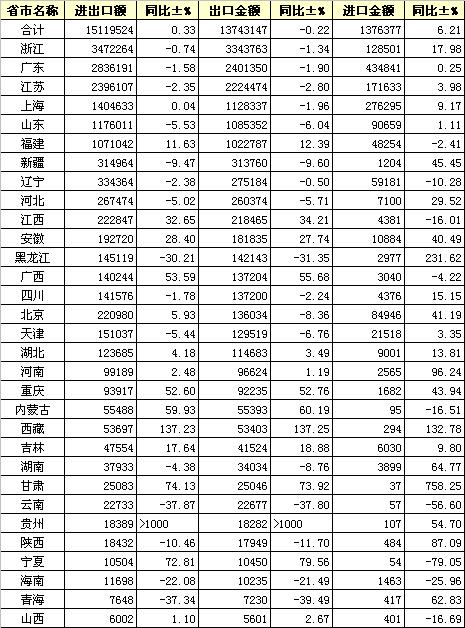 2012年7月全國紡織服裝進(jìn)出口分省市統(tǒng)計(jì)