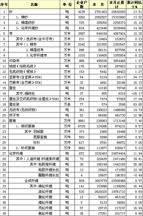 (規(guī)模以上) 轉(zhuǎn)載本網(wǎng)專稿請(qǐng)注明:"本文轉(zhuǎn)自錦橋紡織網(wǎng)" |