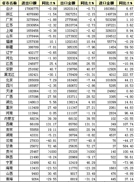 2012年8月全國紡織服裝進(jìn)出口分省市統(tǒng)計(jì)