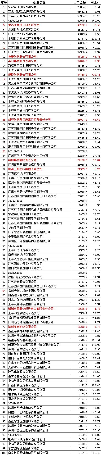 2012年1-10月中國(guó)紡織品服裝出口企業(yè)排名