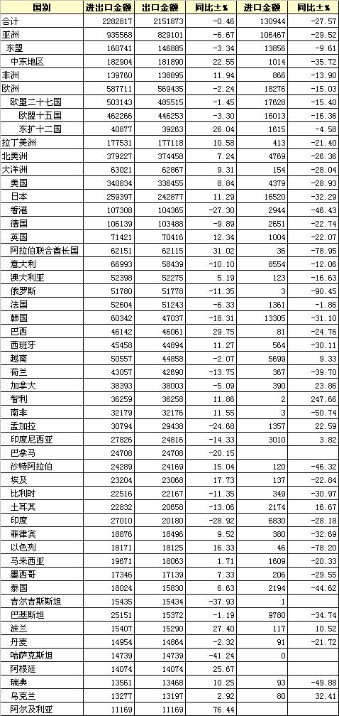 2009年1-2月中國(guó)紡織品服裝出口企
