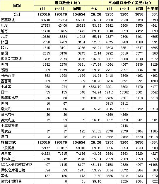 2011年2月各港口棉花進(jìn)口及貿(mào)易方式