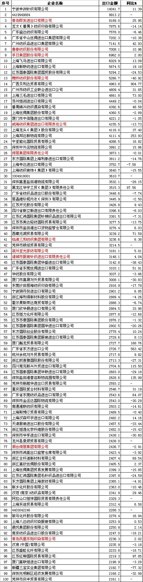 2012年1-2月中國(guó)紡織品服裝出口企業(yè)排名