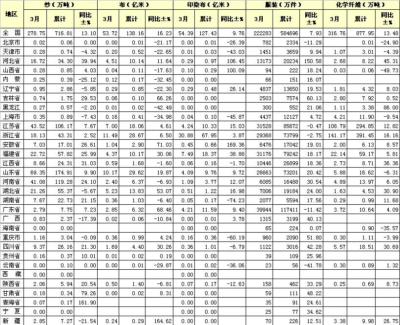 2012年3月紡織工業(yè)產(chǎn)量綜合統(tǒng)計(jì)