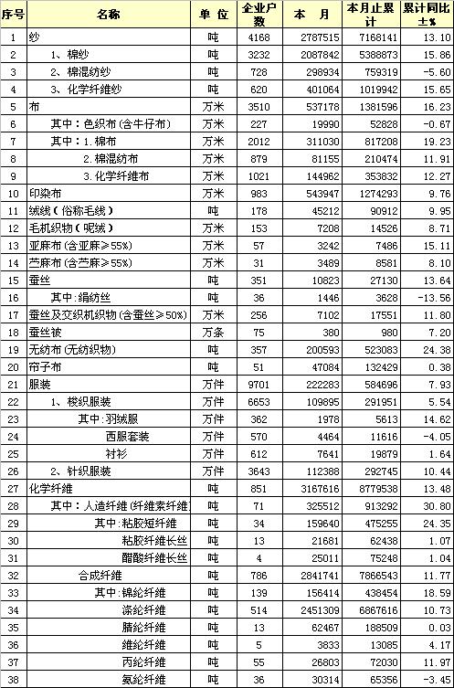 關(guān)于2011年紗、布產(chǎn)量增長(zhǎng)6.7%和