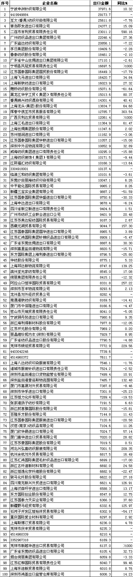 錦橋紡織網(wǎng)—資訊頻道> 統(tǒng)計資料>正文 2012年1-5月中國紡織品服裝出口企業(yè)排名