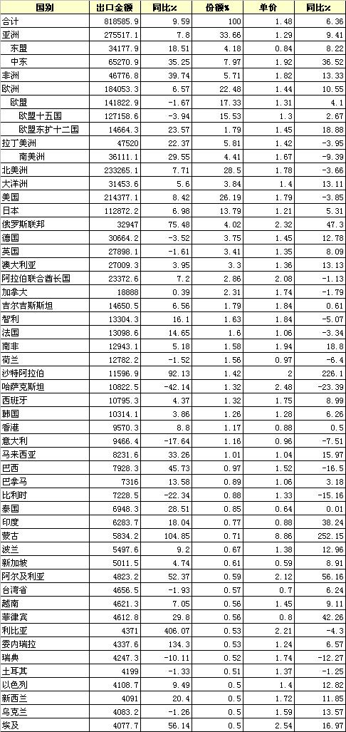 2012年1-5月我國家紡產(chǎn)品出口市場統(tǒng)計