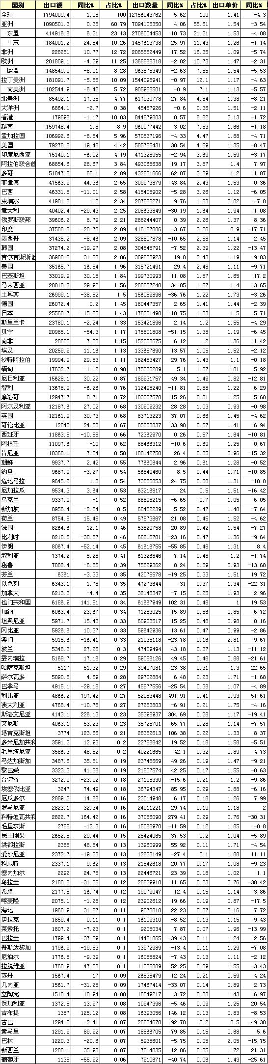 2012年1-5月我國面料出口市場統(tǒng)計(jì)