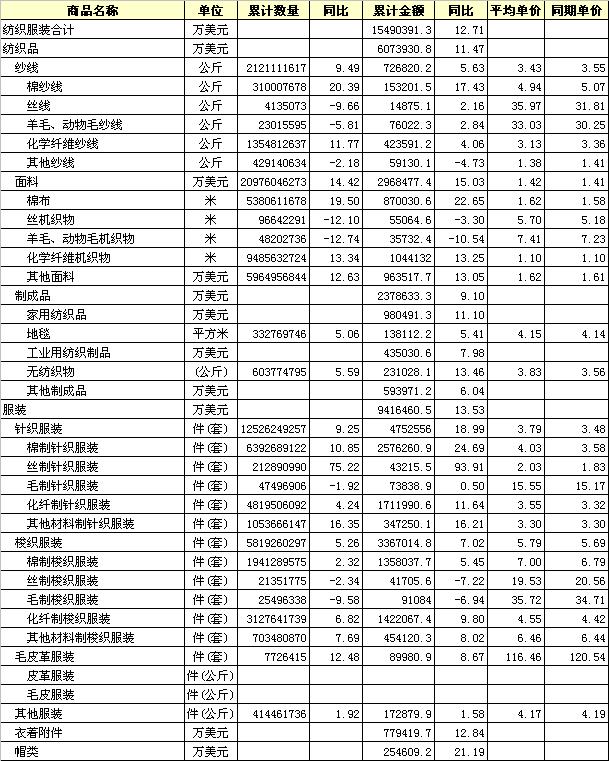 2013年5月我國紡織品服裝進出口國