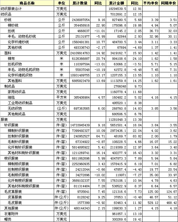 錦橋紡織網(wǎng)—資訊頻道> 統(tǒng)計(jì)資料>正文 2013年8月全國(guó)紡織服裝出口產(chǎn)品統(tǒng)計(jì)