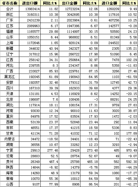 錦橋紡織網(wǎng)—資訊頻道> 統(tǒng)計(jì)資料>正文 2013年6月全國(guó)紡織服裝進(jìn)出口分省市統(tǒng)計(jì)
