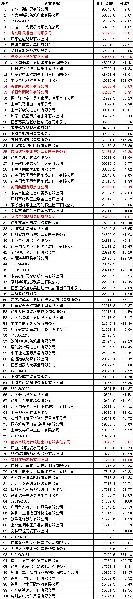 2012年1-12月中國紡織品服裝出口企業(yè)排名