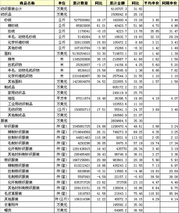錦橋紡織網(wǎng)—資訊頻道> 統(tǒng)計資料>正文 2013年2月全國紡織服裝出口產(chǎn)品統(tǒng)計