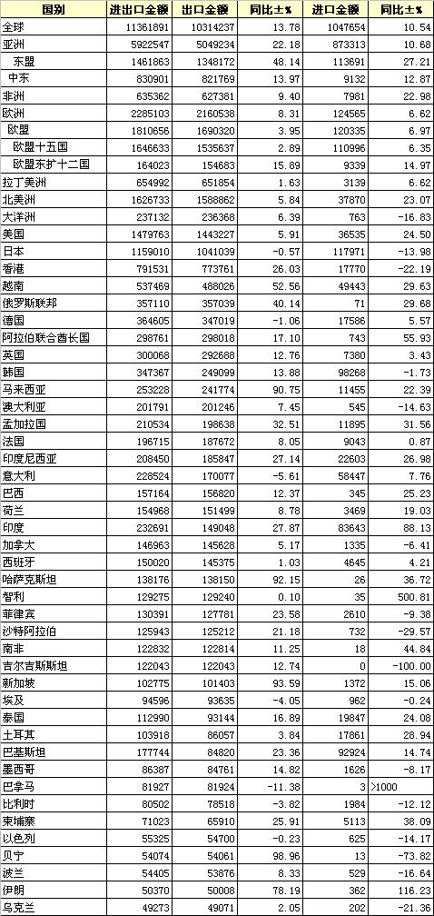 2013年5月我國紡織品服裝進(jìn)出口國別統(tǒng)計(jì)
