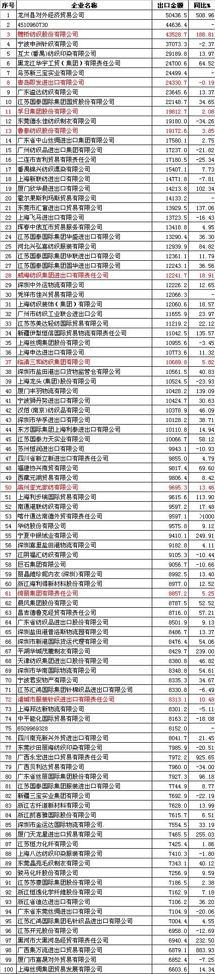 2013年1-5月中國(guó)紡織品服裝出口企業(yè)排名