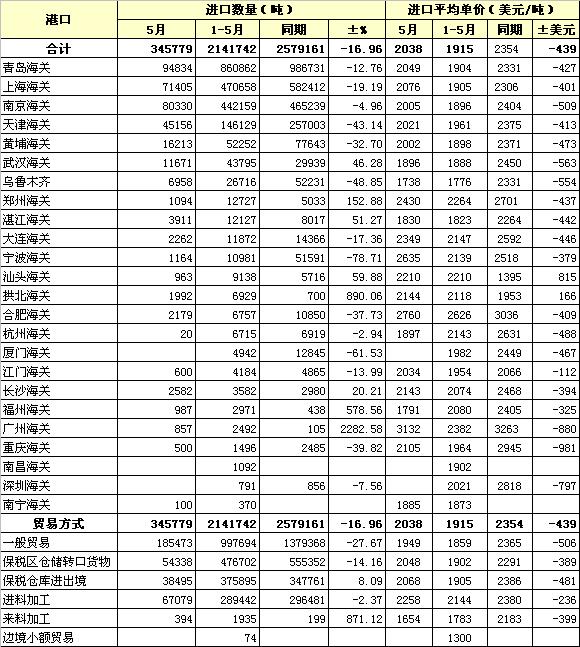 錦橋紡織網(wǎng)—資訊頻道> 統(tǒng)計(jì)資料>正文 2013年5月各港口棉花進(jìn)口統(tǒng)計(jì)