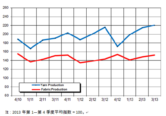 ITMF發(fā)布2013年第3季度全球紗線和織物產(chǎn)量
