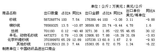 錦橋紡織網(wǎng)—資訊頻道> 統(tǒng)計(jì)資料>正文 2014年1-2月全國紗線出口結(jié)構(gòu)統(tǒng)計(jì)