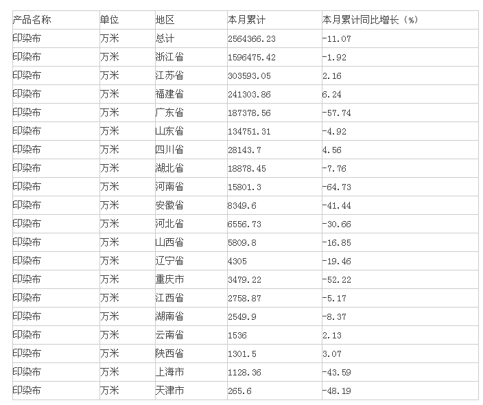 2015年1-6月中國印染布產(chǎn)量統(tǒng)計