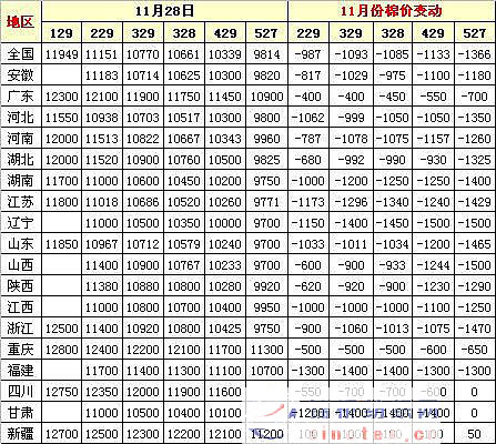 各主產(chǎn)棉區(qū)11月份棉價(jià)變動情況