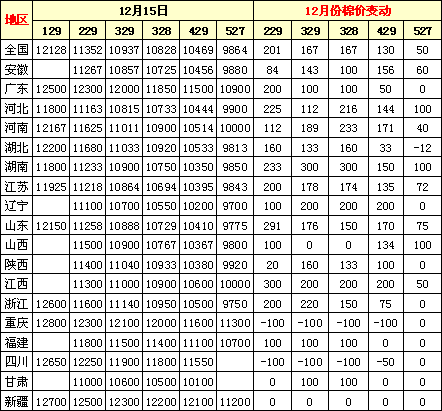 各主產(chǎn)棉區(qū)截止15日的12月份棉價(jià)變動(dòng)情況
