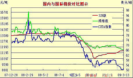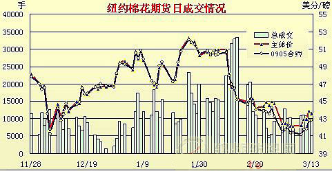 與之相反,2月份國際棉價下滑以來,3月份持續(xù)維持低位運(yùn)行。紐約棉花期貨主體合約價3月份以來一直在41-42美分/磅之間運(yùn)行,交投十分清淡。全球棉價A指數(shù)3月份平均均在50-52美分/磅之間震蕩,按1%關(guān)稅折人民幣主港提貨價約8800-9000元/噸左右,低于國內(nèi)現(xiàn)貨2500元左右。受進(jìn)口棉價差影響,近期棉花進(jìn)口數(shù)量增加,據(jù)海關(guān)統(tǒng)計,2月份進(jìn)口棉花9.3萬噸,比1月份增加1.5萬噸。前2個月進(jìn)口美棉簽約量達(dá)21.48萬噸,比2008年末11-12兩月簽約總量的3.3倍,占美棉出口簽約總量比重由2008年末的23.6%上升至37%。