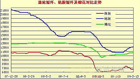5.行業(yè)引導(dǎo),粘膠短纖止跌反彈。面臨行業(yè)全面虧損局面,粘膠專業(yè)委員會在北京召開粘膠會議。會議達(dá)成共識,為維護(hù)行業(yè)生存和發(fā)展,力爭2009年全面扭轉(zhuǎn)行業(yè)虧損局面,要求短纖生產(chǎn)企業(yè)減產(chǎn)保價,長絲至6月份前上調(diào)4000元左右,并從即日起長絲價格上調(diào)1000元。外銷價格進(jìn)行相應(yīng)調(diào)整。在行業(yè)規(guī)定指導(dǎo)下,1個多月來粘膠短纖主體價由11500元/噸上漲至目前的12900元/噸,上漲1400元左右,漲幅12.2%。 6.油價低位徘徊,滌綸短纖上沖回落。受金融危機(jī)和原油消費(fèi)下降影響,國際原油價格大幅下滑后持續(xù)低位徘徊,紐約原油期貨價格3月份以來基本在42-45美元/桶。受原油價格低位和下游滌綸短纖需求不振影響,滌綸短纖又回落至7500元/噸左右。滌綸短纖自2008年10月份跌破萬元以來,一直就在低位徘徊。