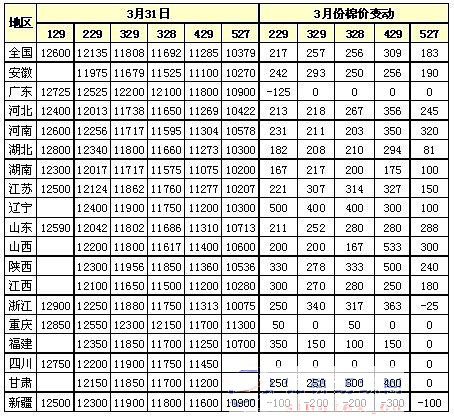 主產(chǎn)棉區(qū)3月份棉價變動情況