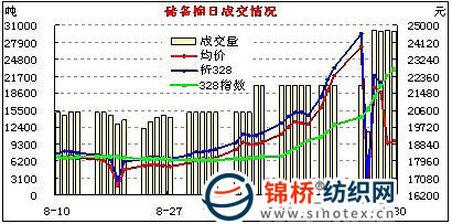 五是與現(xiàn)貨棉價相比,價格差距逐步拉大。9月上旬差異不大,但是呈逐日擴大態(tài)勢,儲備棉成交均價高于328級棉價50-770元。9月中旬后,由于儲備棉競價大幅上揚,價差進一步擴大,儲備棉均價高于328級棉價指數(shù)均在千元以上,最高時達1500元。9月下旬這一差距擴大,其中25日國儲棉均價高于現(xiàn)貨3654元。但是月末后3個交易日競價理性,成交價大幅下調(diào),開始出現(xiàn)儲備棉價低于現(xiàn)貨棉價,其中28日低于現(xiàn)貨322元,29日和30日分別低于現(xiàn)貨3518元和3646元。