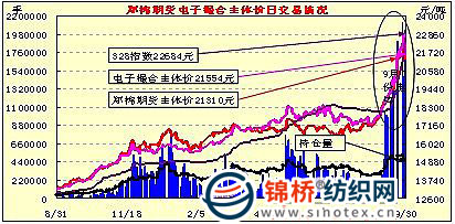 3.國內(nèi)期棉各合約主體價上漲4000-5000元左右,漲幅20%以上,但是月末大幅向下調(diào)整。受國儲棉競價和現(xiàn)貨棉價大步上調(diào),電子撮合、鄭棉期貨直線上揚(yáng),為適應(yīng)追趕國儲棉價,在連續(xù)調(diào)高漲停板限額后(此前2003/04年度也因?yàn)椴荒芨鷿q現(xiàn)貨而調(diào)整過),連續(xù)多次出現(xiàn)全線漲停板,各合約價格均達(dá)2萬元以上。截止9月28日,電子撮合主體價達(dá)22877元/噸,較8月末上漲5213元,漲幅29.5%;鄭棉期貨主體價22088元/噸,較8月末上漲4394元,漲幅24.8%。