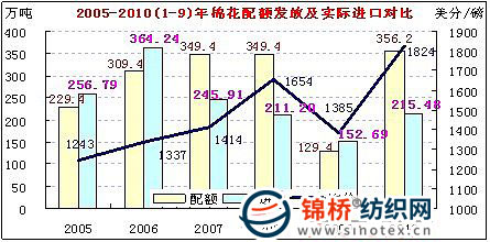 錦橋紡織網(wǎng)—資訊頻道> 錦橋視點(diǎn)>正文 1-9月我國棉花進(jìn)口前高后低 進(jìn)價高昂 進(jìn)量縮減