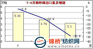 二是紗線出口量縮價揚,9月紗線出口首度出現(xiàn)負增長,棉紗線第3季度出口全線負增長。