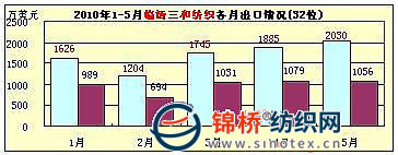 6.臨清三和紡織集團(tuán):5月臨清三和出口2030萬美元,同比增長92.2%,環(huán)比增長7.7%。1-5月累計出口0.85億美元,排序全國紡織服裝出口企業(yè)第32位,同比增長75.1%,同比2008年增長7.5%。