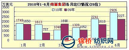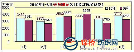 從山東地區(qū)部分企業(yè)出口情況看,6月份紡織企業(yè)出口激增狀況微有緩解,針復(fù)制企業(yè)出口保持平穩(wěn)。