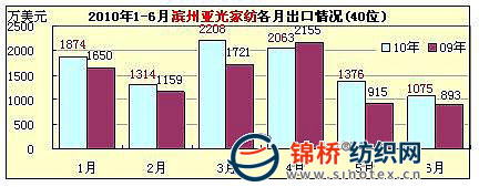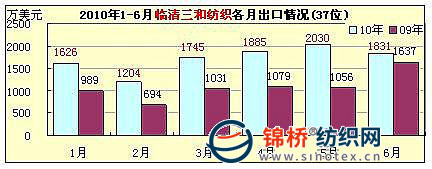 6、臨清三和紡織集團(tuán)上半年出口增長(zhǎng)59.1%,6月份環(huán)比下降9.8%。上半年臨清三和紡織集團(tuán)出口1.03億美元,排序全國(guó)第37位,同比增長(zhǎng)59.1%。其中6月份出口1831萬美元,同比增長(zhǎng)11.9%,環(huán)比減少199萬美元,減幅9.8%。