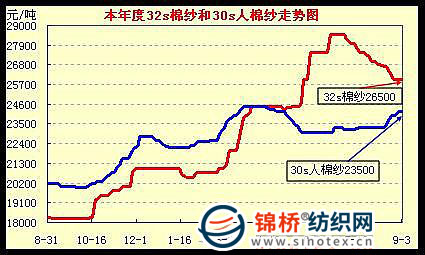 6.棉紗市場。8月棉紗線仍然下跌,但是跌幅逐步縮小,人棉紗則有上千元漲幅。據(jù)統(tǒng)計(jì),32支紗價(jià)目前主體價(jià)26000元/噸左右,在7月下跌1200元后,8月續(xù)跌1300元,累計(jì)下跌2500元左右。經(jīng)測算,32支棉紗毛利率繼續(xù)下降,由7月初的19.9%下降至7月末的15.5%,目前毛利率降至11.05%,比7月初下降8.85點(diǎn)。8月人棉紗累計(jì)上調(diào)900余元,目前30支人棉紗主體價(jià)漲至24200元/噸,而且仍然有續(xù)漲可能。