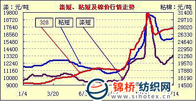 這一時期,為防通脹,穩(wěn)物價(jià),政府出臺多項(xiàng)調(diào)控政策調(diào)控。包括提高存款準(zhǔn)備金率、價(jià)格干預(yù)等措施,以回收流動性并穩(wěn)定消費(fèi)價(jià)格總水平。在棉花市場方面,包括規(guī)范經(jīng)營和加工秩序、取締無證收購加工,提高期棉合約交易保證金和電子交易市場監(jiān)管、抑制過度投機(jī)等措施,同時要求鐵路部門做好棉花調(diào)運(yùn)工作,保障市場供應(yīng)等。在一系列政策調(diào)控下,游資開始逐步撤離棉花市場,棉價(jià)急速回落,其他產(chǎn)品也相應(yīng)跟隨向下調(diào)整。如滌綸短纖由最高時的19800元跌至13500元,跌幅31.8%;粘膠短纖由30800元破3萬,跌幅2.6%;32支棉紗由43000元跌至37000元,跌幅14%等。