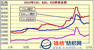 這一區(qū)間,在棉價暴漲的帶動下,紗價、粘膠、滌短價格也都創(chuàng)出歷史最高紀錄。其中滌綸短纖最高達19800元/噸,比暴漲前漲近萬元,漲一倍;粘膠短纖最高達30800元/噸,漲12450余元,漲幅67.8%;32支棉紗達43000元/噸左右,漲1.65萬元,漲幅62.3%;30支人棉紗36500元/噸,漲1.25萬元,幅52%;純滌32支25500元/噸,漲幅54.5%等。