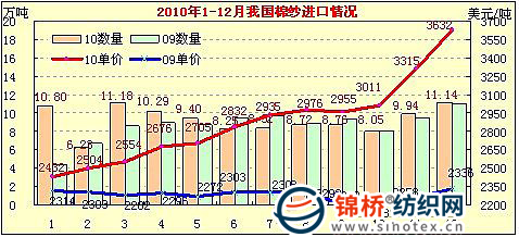 [盤點2010]出口額遠大于出口量增速 棉紗線出口量持續(xù)下滑