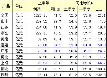 山東利潤(rùn)總額267.52億元,同比增長(zhǎng)27.7%,其中一季度增長(zhǎng)32%,二季度增長(zhǎng)24.4%,增速下降7.6點(diǎn);