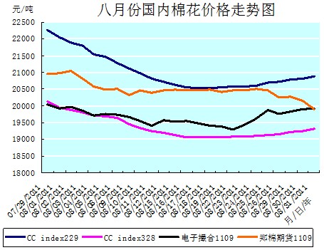 八月份紗、布市場行情基本上是與棉花行情同步運(yùn)行的走勢。