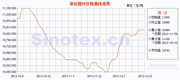 (數(shù)據(jù)來源:錦橋紡織網(wǎng)曲線欄目) 本周(12.17-12.21),上游原料PTA、MEG、聚酯切片繼續(xù)上漲,滌綸短纖成本支撐依然堅(jiān)挺;滌綸短纖市場報(bào)價(jià)穩(wěn)中小幅上調(diào),但下游企業(yè)采購需求未能有效跟進(jìn),市場有價(jià)無市狀態(tài),觀望氣氛濃厚,成交重心跟進(jìn)艱難。滌綸短纖行業(yè)開機(jī)負(fù)荷變化不大,企業(yè)的庫存量繼續(xù)下滑,庫存量多在一周以下的水平。鑒于紗線企業(yè)的需求乏力,聚酯高成本難以持續(xù)向下游傳導(dǎo),預(yù)計(jì)下周滌綸短纖行情將繼續(xù)調(diào)整。當(dāng)前,1.4D直紡滌綸短纖市場中心價(jià)在10890元/噸,本周累計(jì)上漲60元/噸,漲幅0.55%?! ?/p> 本周原油價(jià)格主要圍繞美國有關(guān)財(cái)政懸崖問題談判的進(jìn)度而變化,四漲一跌,并于周四突破90美元的關(guān)鍵位置。周一,美國有關(guān)財(cái)政懸崖問題談判有了重大進(jìn)展,原油需求前景受到提升;另一方面,中東緊張局勢(shì)加劇也從供應(yīng)層面提供了動(dòng)力,主力原油合約延續(xù)上周五的漲勢(shì)順利突破每桶87美元關(guān)口,收于每桶87.20美元。周二公布的多組經(jīng)濟(jì)數(shù)據(jù)總體利好,財(cái)政懸崖協(xié)議有望達(dá)成,美國將會(huì)陷入另一次經(jīng)濟(jì)衰退的可能性下降,1月主力原油合約漲73美分收于每桶87.93美元。周三,美國能源部最新庫存報(bào)告顯示上周原油庫存減少了100萬桶,幫助原油連續(xù)第四日上漲,1月主力原油合約漲1.58美元收于每桶89.98美元。油價(jià)周四小漲15美分收于每桶90.13美元。周五眾議院取消關(guān)鍵表決,美國經(jīng)濟(jì)再度陷入衰退的風(fēng)險(xiǎn)加大,油價(jià)受到壓制下挫,大跌1.47美元收于每桶88.66美元。 化纖原料價(jià)格運(yùn)行明細(xì)表