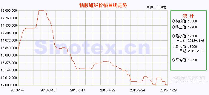 【錦橋紡織網(wǎng)專稿】本周(11.25-29),粘膠短纖價格穩(wěn)中下行。廠家?guī)齑鎵毫τ兴仙鲐浺庀蜉^強,優(yōu)惠程度放大。廠家整體開工率不足,資金問題仍較突出。上游方面,棉漿和短絨價格保持穩(wěn)定,下游人棉紗布買氣不足,弱勢盤整。終端年終低迷拖累粘膠短纖,后期仍舊保持弱勢整理。目前,粘膠短纖中端商談維持在12600-12700元/噸(較上周走低100-200元/噸),部分較低在12400-12500元/噸。高端主流商談在13000元/噸或略低水平(較上周走低200元/噸)。浙江富麗達粘膠短纖價格平穩(wěn),現(xiàn)市場上1.5D主流成交價在12600-12700元/噸,新疆地區(qū)庫存壓力較大。