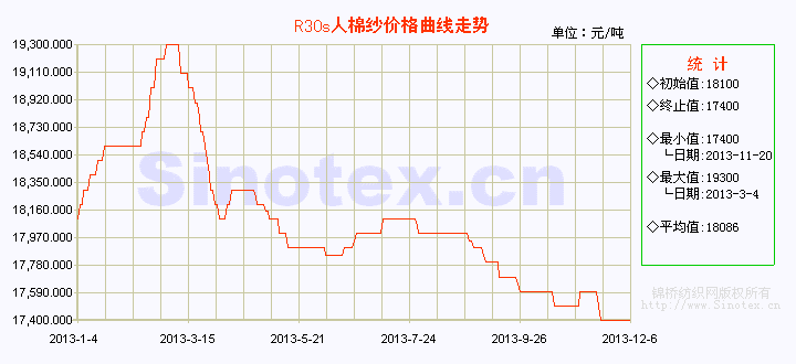 人棉紗價(jià)格穩(wěn)中偏弱,紗廠積極出貨,優(yōu)惠幅度和范圍都有放大,下游采購(gòu)情緒不佳。人棉紗10s、30s銷(xiāo)售尚可,10s主要是用于生產(chǎn)彈力羅緞面料,30s主要是用于生產(chǎn)鉆石棉面料,其它交易量不大。原料粘膠短纖價(jià)格也有所下跌,使人棉紗無(wú)有利支撐;人棉布需求不佳,使得整體偏弱,廠家開(kāi)工情況一般。目前,R10s中心價(jià)15300元/噸(持平);R20s中心價(jià)16300元/噸(持平);R30s中心價(jià)17400元/噸(持平)。